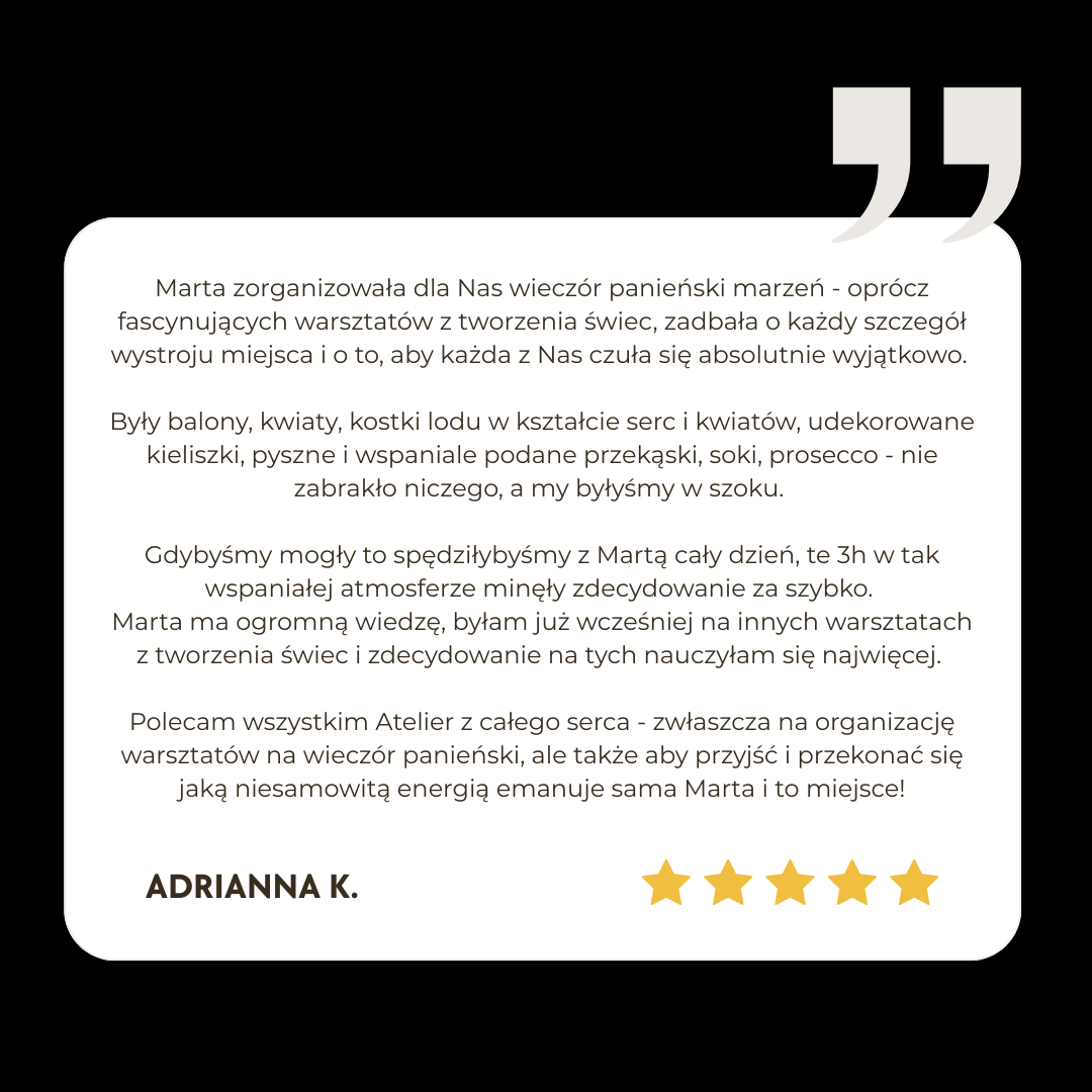 Każda z Was zabierze ze sobą trzy wyjątkowe świece, które będą fantastyczną pamiątką tego wyjątkowego wieczoru panieńskiego.